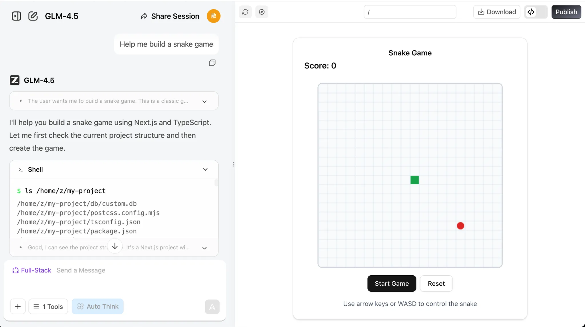 💡 示例提示词: 帮我做一个贪吃蛇游戏,它应该支持