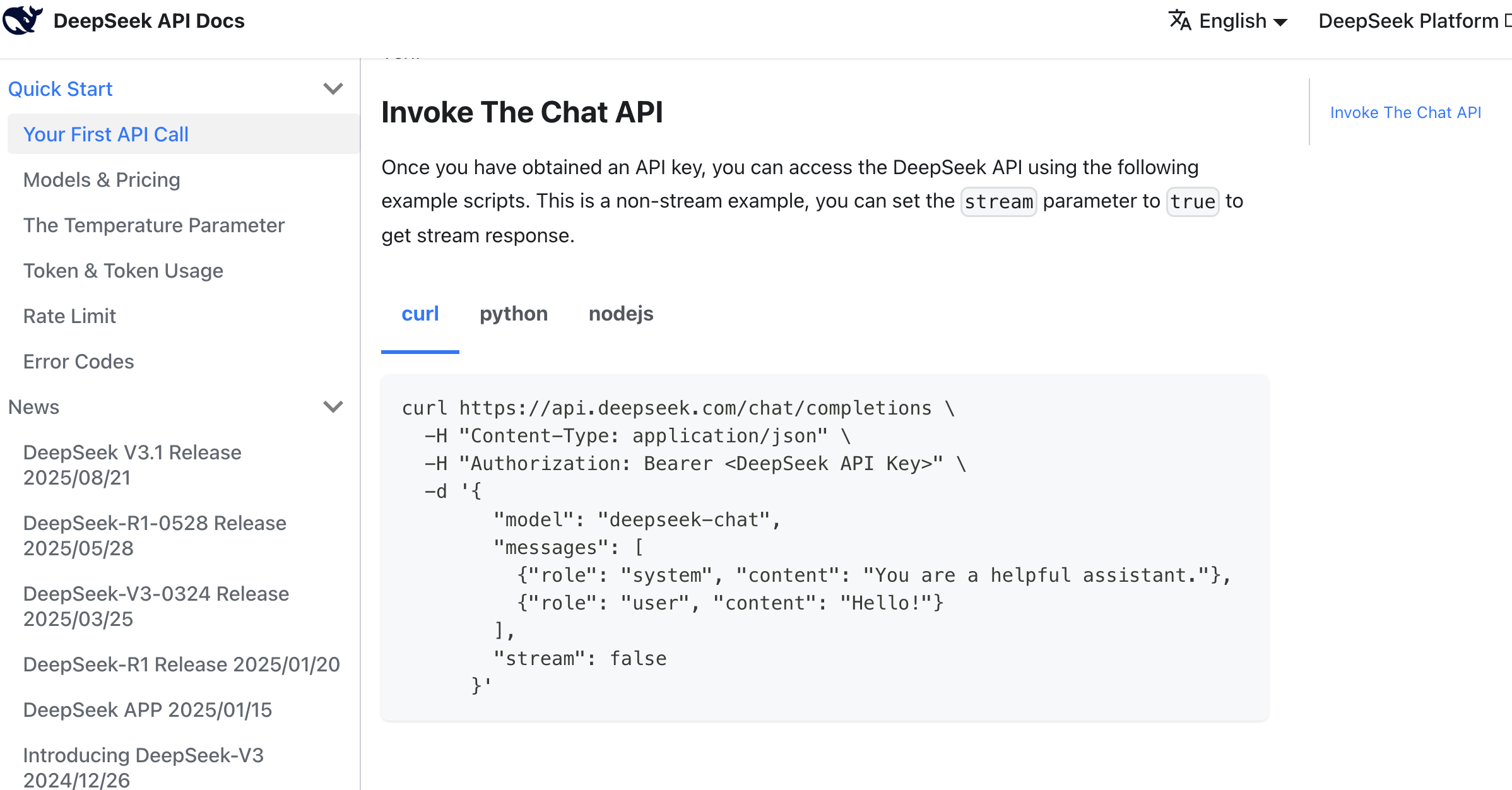 此时,你可以直接阅读 API 文档,它通常提供 curl 或 Python 的调用示例。