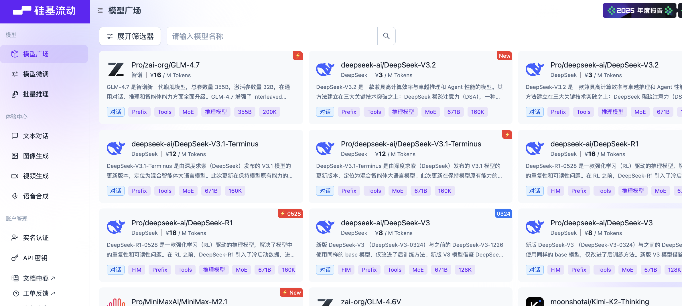 硅基流动(SiliconFlow) 是国内知名的 AI 模型聚合平台,提供多种主流大语言模型和视觉语言模型的 API 接口服务。