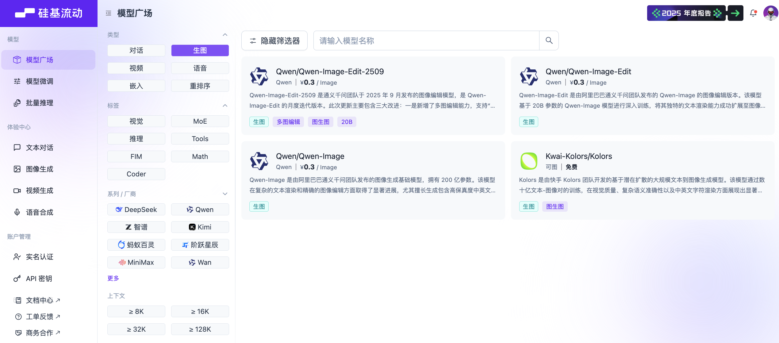 SiliconFlow 在开源大模型的推理服务方面较为成熟,是使用国产开源 AI 模型的常见选择之一。
