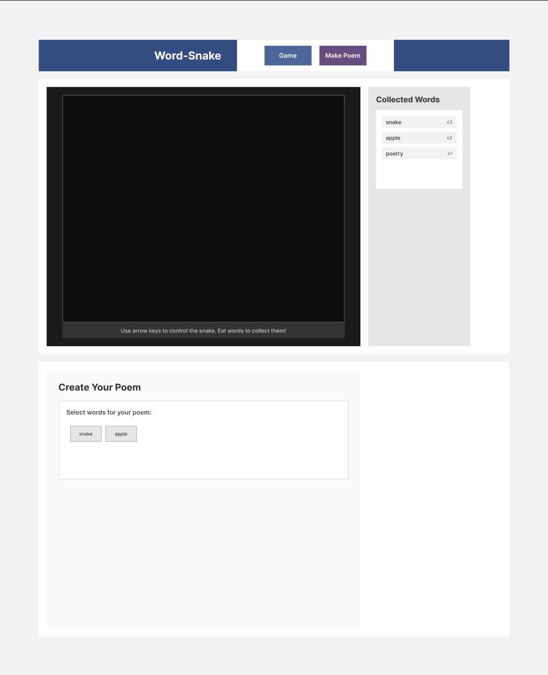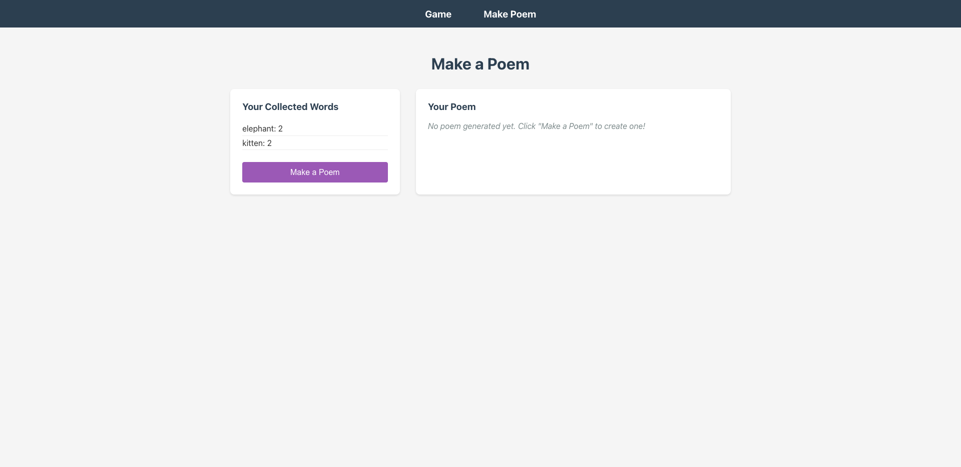 - 添加简单的导航,在 Game 和 Make Poem 两个页面之间切换。