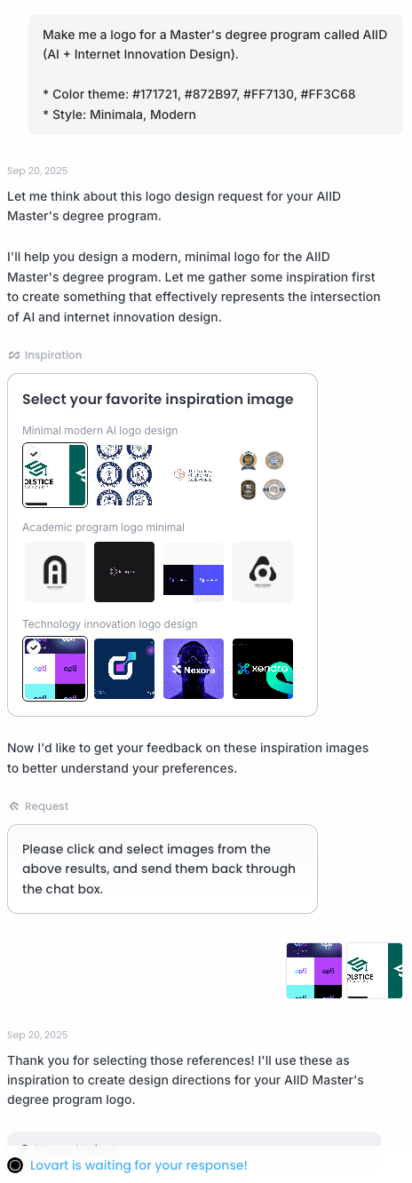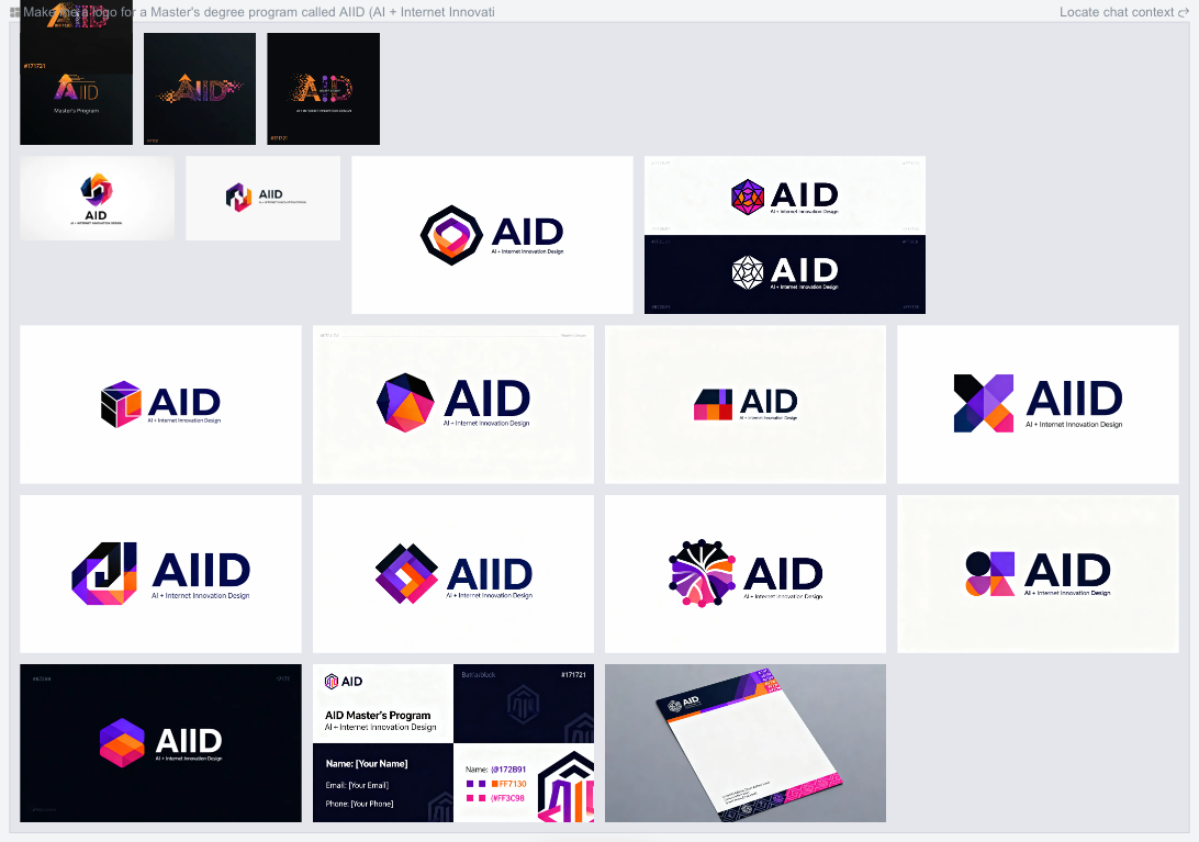 将象征 AI 的抽象图形与文字相结合,并导出为带透明背景的 PNG。"3. 向 Agent 请求设计