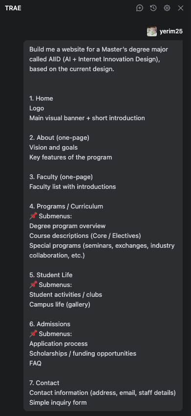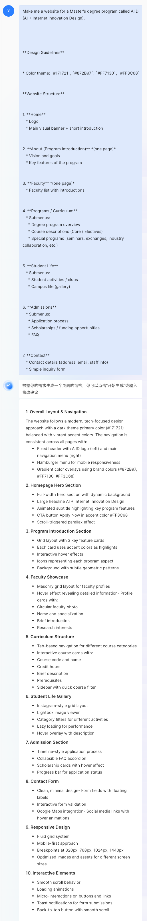 当草稿代码生成后,Agent 通常会自动启动项目,并展示生成好的网站页面。