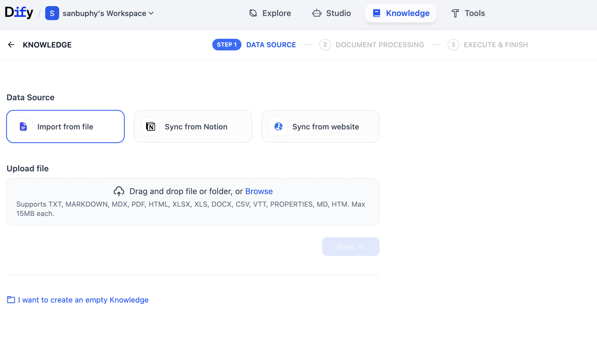 在本节课的实操环节中,我们将使用流行的 AI 工作流平台 Dify,动手搭建一个基于知识库的问答机器人。你可以轻松将各种类型的专属资料,如产品手册、公司制度、项目文档、研究论文、知识库文章,甚至是个人笔记集构建为知识库。