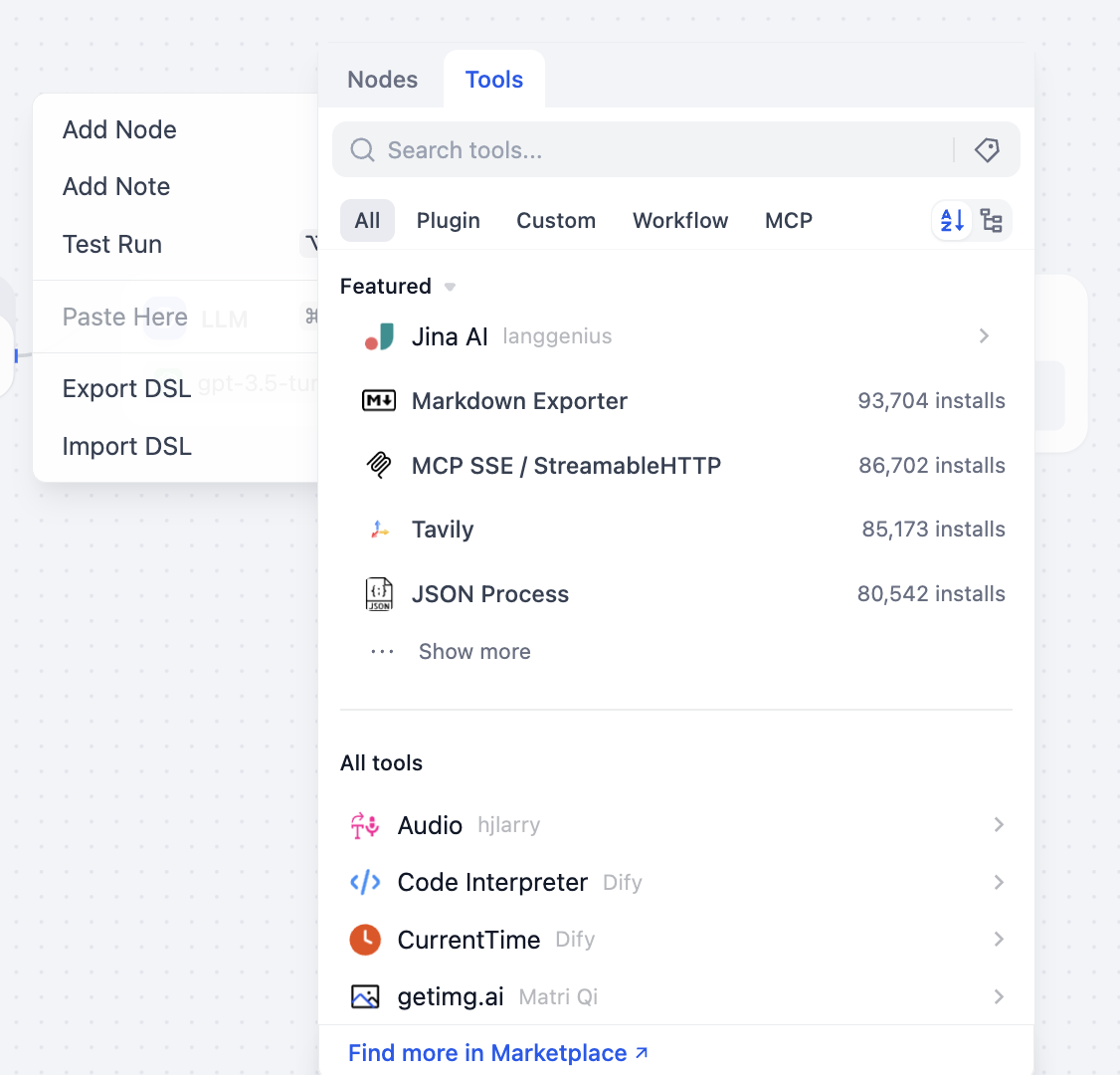 这种做法带来了多重价值:非技术人员(如产品经理或运营)可以通过拖拽组件快速搭建 AI 应用;开发者可以将 RAG 检索、LLM 调用、API 工具等封装为标准节点,在不同业务场景中复用;整个流程还可被完整追踪、调试和持续优化,满足企业对稳定性与合规性的要求。