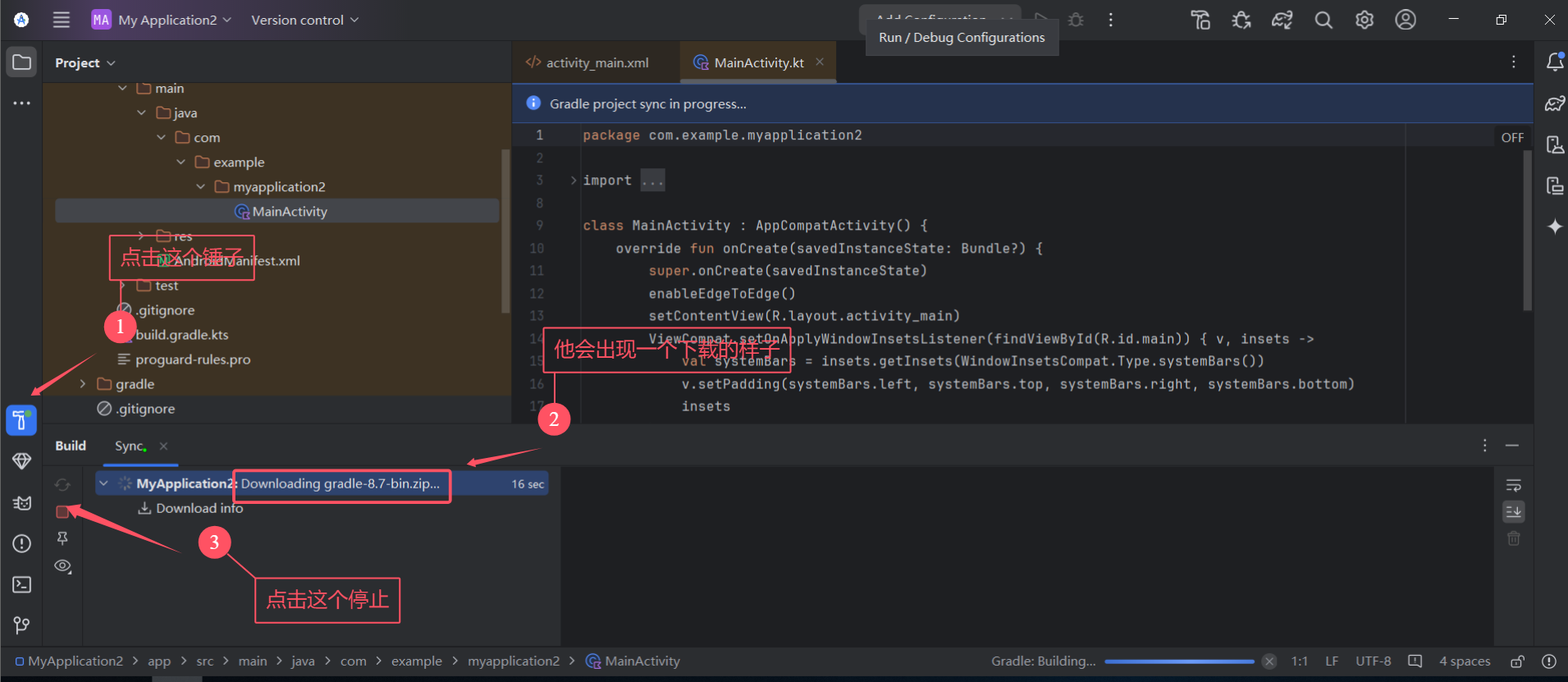 如果你的 Android Studio 右侧底部状态栏正在显示下载进度条(Gradle Building...),请根据下图操作暂停正在下载的依赖,避免文件冲突。