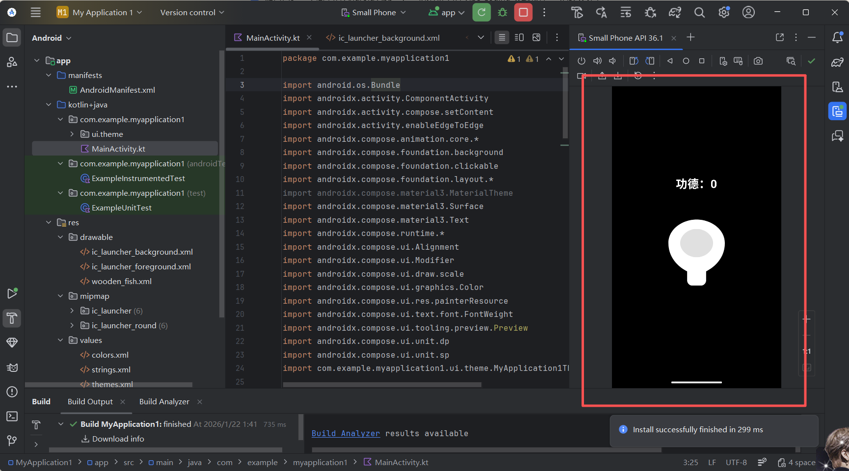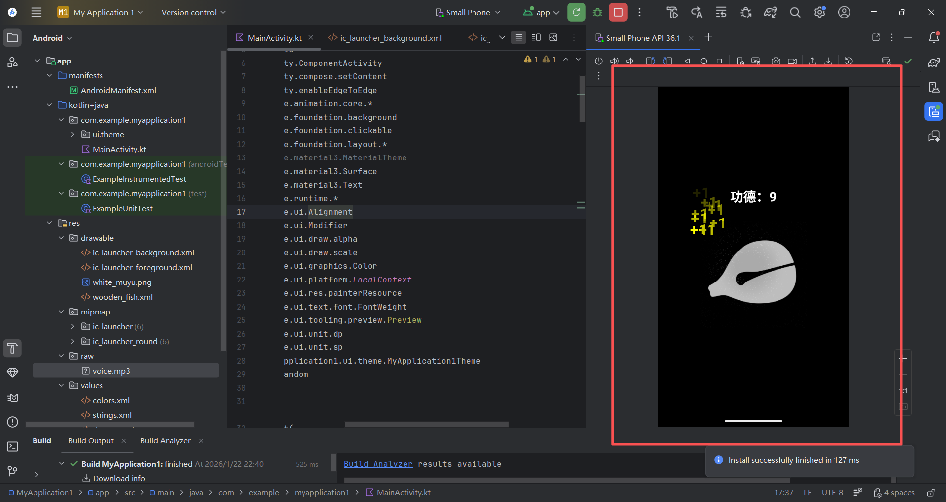 好了,教程到这里就结束了。看着手机上自己亲手做出来的“电子木鱼”,不知道你现在心情如何?